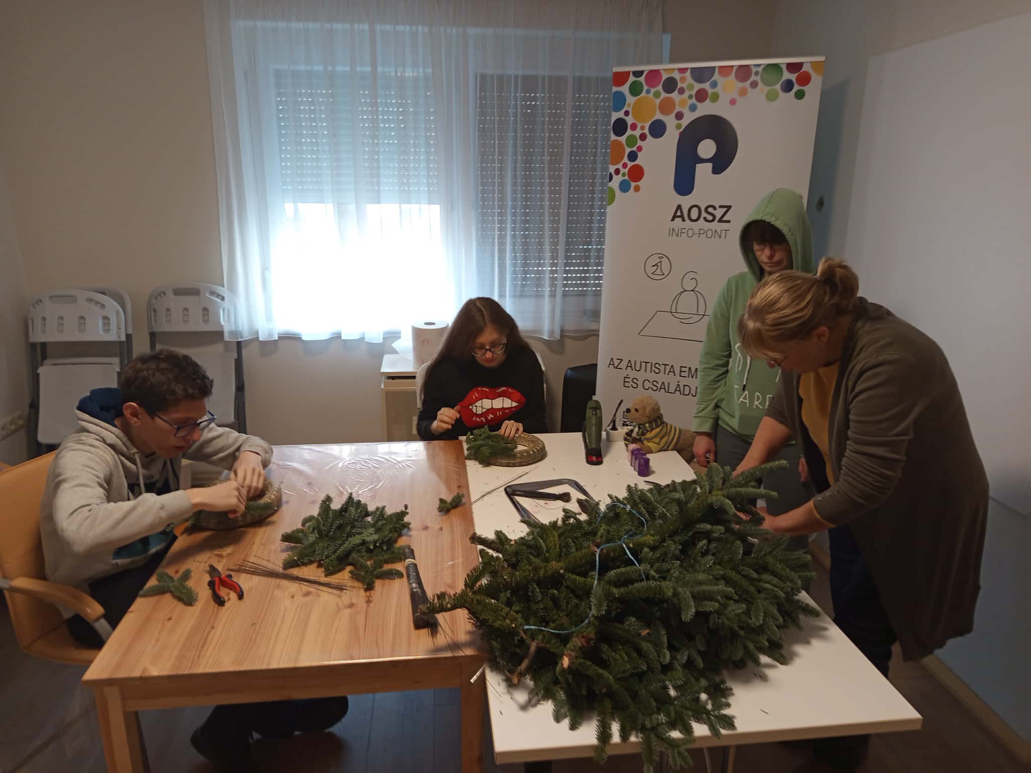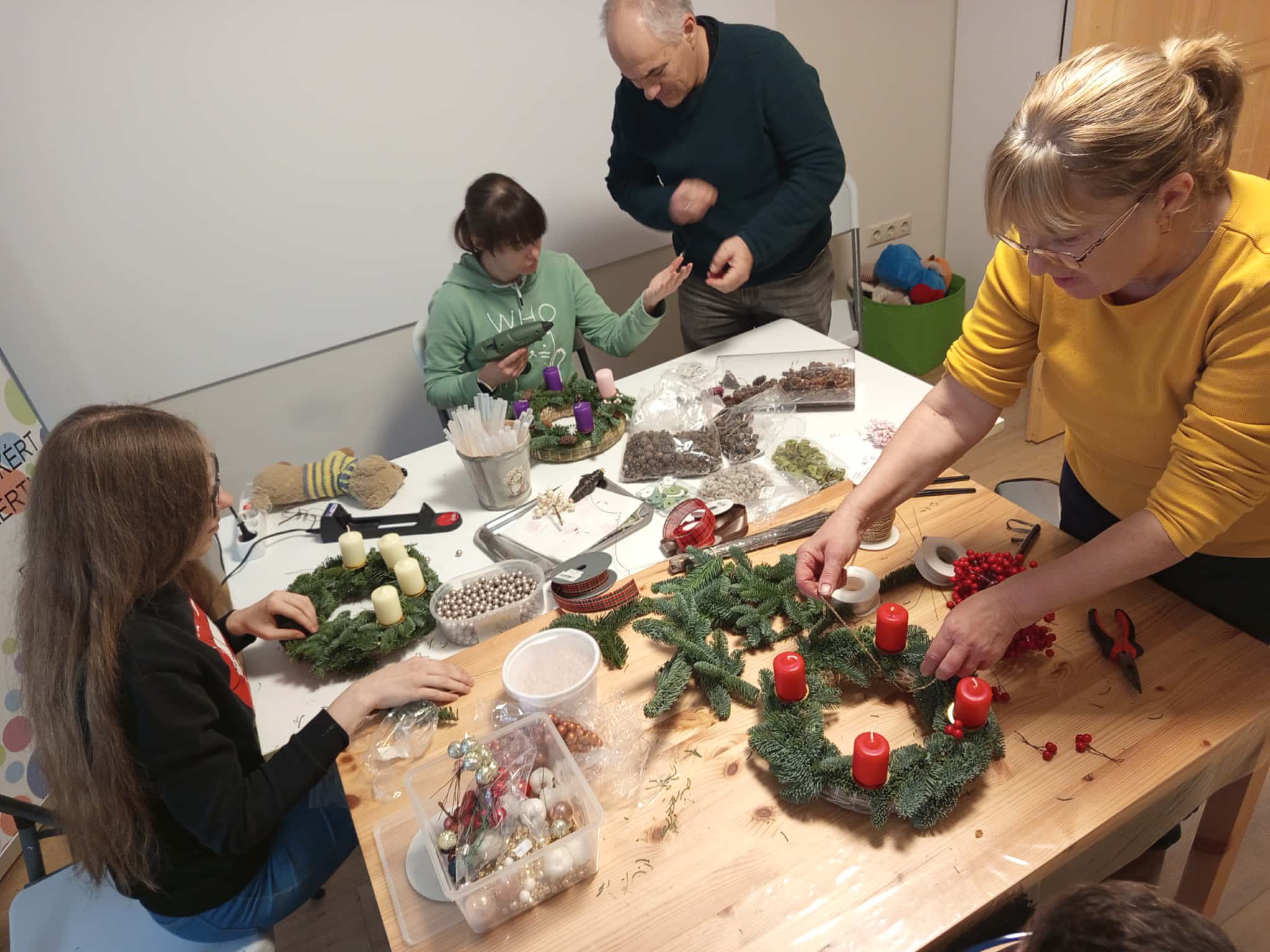 A fiatalok adventi koszorúkat készítettek, melynek kivitelezésben és az alapanyagok biztosításában Apáti-Pék Mária volt a segítségünkre. Marcsinak ezúton is köszönjük szépen, hogy a rendelkezésünkre állt!